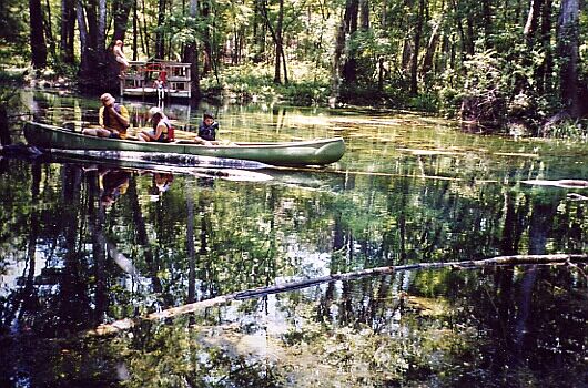 - The authors have visited the springs from the land and also directly from the Santa Fe River by squeezing their canoe under the boardwalk and into the Naked Spring run. While it is legal to enter the springs in this way (as long as no landfall is made), the campground owners would probably not welcome such entry.