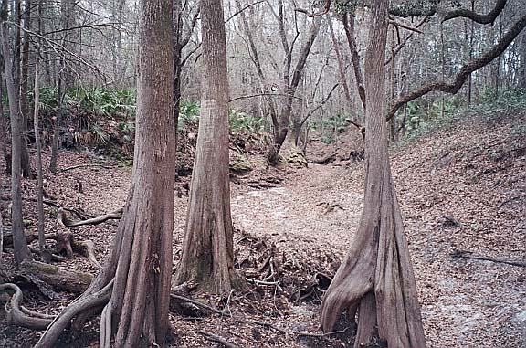 The dry riverbed is beautiful, despite the occasional bottle or mattress remnant. Less than two miles below this site, the paper mill dumps 50,000,000 gallons of polluted wastewater into the Fenholloway River. The pollution and restoration of this river are ongoing controversies in nearby Perry.
