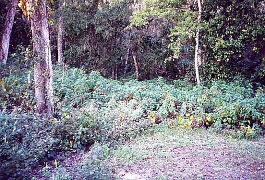 There is no current flow at Zolfo Spring and apparently has been no flow since the town plugged up the spring with concrete in the 1960s, according to a park staff person working at the site. The site of the pool once built around the spring is completely overgrown, and evidence of the pool is difficult to see amid the brush and overgrowth. The historic spring run passes through semitropical forest (estimated to be 1/3 mile) to the Peace River. On date of first visit in December 2001, portions of the old run contained water but no flow. The run is 6-10 feet wide and countersunk several feet below the general surface. The size of the run suggests the historic flow was probably third magnitude.